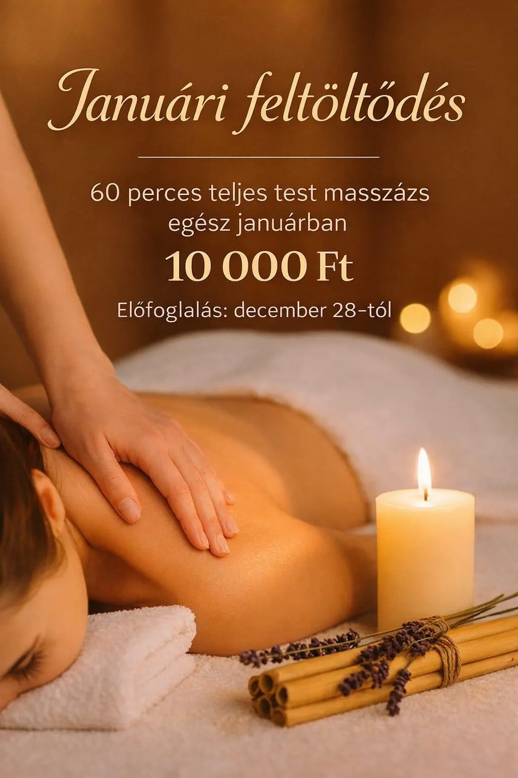 - Masszázs: Pihenjen és relaxáljon masszázs közben, engedje hogy feszültségei oldódjanak és szervezete újra feltöltődjön.
